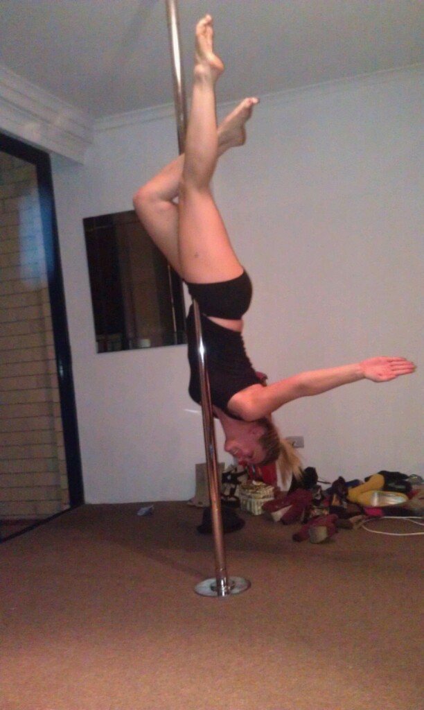 This is a new trick I taught myself on the pole when I was under the influence... I'm actually only holding on with one leg. I was very proud of myself.